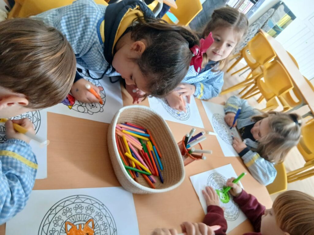 Las sesiones de internivel se organizan en grupos mixtos, formados por un tercio del alumnado de 3 años, un tercio de 4 años y un tercio de 5 años. Esta agrupación favorece la convivencia entre edades, el aprendizaje entre iguales y el desarrollo de habilidades sociales como la cooperación, la empatía y la ayuda mutua.