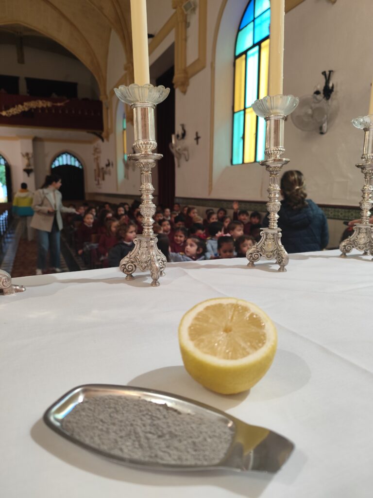 El miércoles de Ceniza, los alumnos y los profesores del colegio acudimos a la Capilla para participar de la eucaristía o la celebración de la Palabra, según el curso, y ahí se les explica a los chicos y chicas qué es la Cuaresma, por qué se celebra, de dónde viene esa ceniza y qué podemos, o debemos, hacer cómo cristianos que somos, en ese tiempo litúrgico.